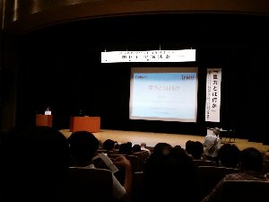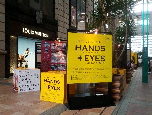 津波避難ビルのサインが張ってあるビル入り口。初めてこのマークを見た。震災以降、このようなソフト対策も浸透しつつあるようだ。