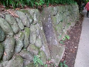 右岸側護岸。石積みの突堤が見える。