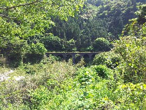 板田橋(宮崎県の土木遺産)。昭和10年にRCゲルバーが造られていた。大事に使われている。(32.5538822,131.6563925)