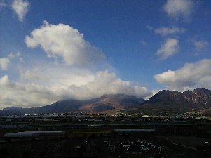メガソーラーが斜面に。電力の自給自足ができるのだそう。